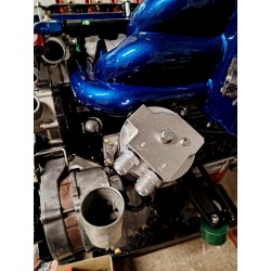 Der Deckel ist aus Aluminium gefertigt und hat einen AN10 Vor- und Rücklauf für die Montage eines Ölkühlers sowie zwei Sondenplätze in 1/4npt und einen in 1/8npt (wir liefern einen Adapter von 1/4npt auf 1/8npt für den Anschluss einer zweiten Sonde in 1/8npt).