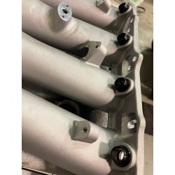 - Il peut être nécessaire de décaler le rail d'injection d'origine à l'aide de rondelles ou de petites entretoises